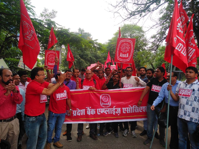 today Bank Strike - प्रदर्शन कर रहे बैंक कर्मचारियों ने कहा कि बैंकों के विलय को रोका जाए, जनविरोधी बैंकिंग सुधारों को रोका जाए। हड़ताल के कारण सरकारी एवं पुराने निजी क्षेत्र के बैंकों का कामकाज प्रभावित रहा। ऑल इंडिया बैंक एम्पलाइज एसोसिएशन एवं बैंक एम्पलाइज फेडरेशन ऑफ इंडिया ने इस राष्ट्रव्यापी हड़ताल किया गया।