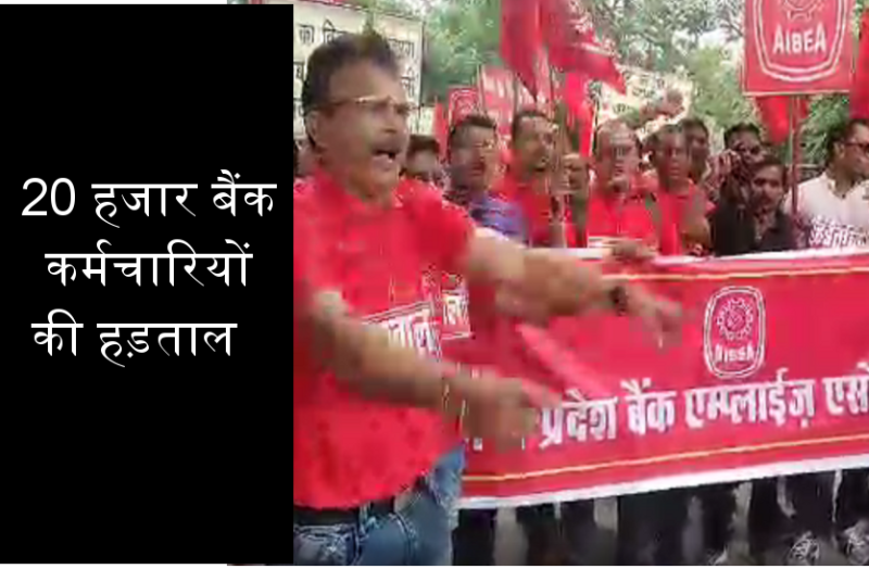 सार्वजनिक क्षेत्र के कई बैंकों के विलय और जमा राशि पर दरों में गिरावट के विरोध सहित छह सूत्रीय मांगों को लेकर ऑल इंडिया बैंक एम्प्लाईज एसोसिएशन तथा बैंक एम्प्लाईज फेडरेशन ऑफ इंडिया के आव्हान पर मध्यप्रदेश के 20 हजार बैंककर्मी आज एक दिवसीय हड़ताल पर है।
