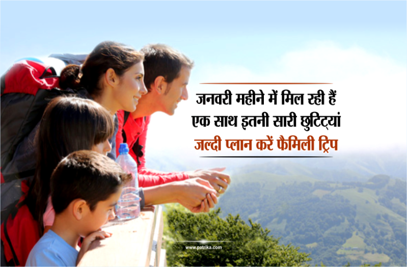 भोपाल। नए साल की शुरुआत हो चुकी है। वैसे तो साल के पहले ही दिन लोग फैमिली के साथ घूमने के लिए जाते हैं लेकिन अगर आप नहीं गए हैं तो आपको परेशान होने की जरूरत नहीं है। जनवरी के महीने में आपको लंबी छुट्टियां मिल रही हैं। इस गवर्मेंट हॉलीडे भी हैं। जिसमें आप एक दिन की छुट्टी को लेकर तीन-तीन दिन के लिए फैमिली के साथ लॉन्ग वीकेंड पर जा सकते हैं। महीने मकर सक्रांति और 26 जनवरी पर आप फैमिली के साथ कहीं भी ट्रिप पर जा सकते हैं।