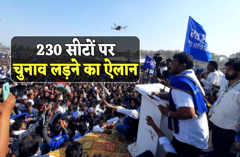 मध्य प्रदेश में विधानसभा चुनाव लड़ने का ऐलान करते हुए भीम आर्मी के संस्थापक चंद्रशेखर आजाद ने कहा कि, अब अपने हक के लिए लड़ाई सड़क पर नहीं, बल्कि सदन में लड़ेंगे। दलित आदिवासी और ओबीसी समाज मध्य प्रदेश में 90 फ़ीसदी है। पूरी 230 सीटों पर विधानसभा चुनाव लड़ेंगे। 50 फ़ीसदी ओबीसी समाज फिर 27 फ़ीसदी आरक्षण क्यों लें। हमारे आरक्षण को छीना जा रहा। उन्होंने ये भी स्पष्ट किया कि, हमारी लड़ाई सिर्फ भाजपा से नहीं, बल्कि जो भी सत्ता में रहेगा, उससे हमारी लड़ाई है।