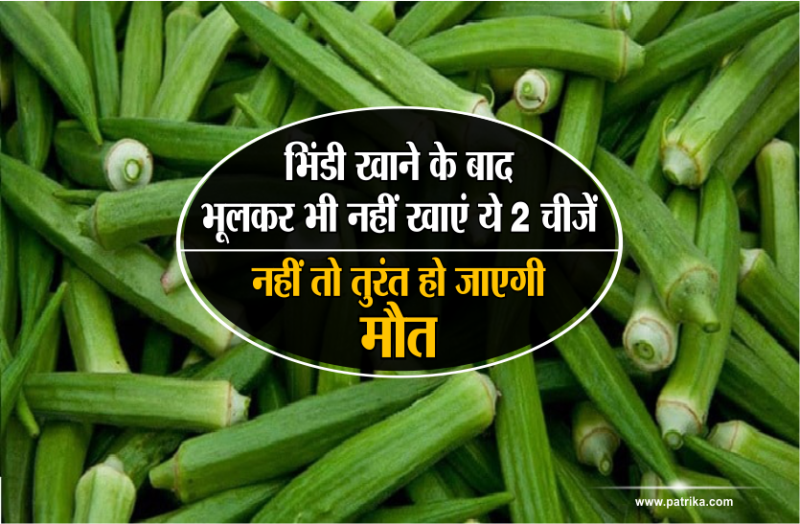 - दूसरा ये कि जब भी भिंडी की सब्जी के खाएं तो ध्यान रखे कि सब्जी खाने के तुरंत बाद करेले के जूस का सेवन बिल्कुल न करें। अगर आप सब्जी खाने के बाद करेले का सेवन करते है तो यह पेट में जहर बनाने का काम करता है। अगर आपके शरीर में करेले के जूस की मात्रा ज्यादा हुई तो आपकी मृत्यु भी हो सकती है। इसलिए भिंडी खाने के बाद करेला का सेवन भूलकर भी नहीं करना चाहिए।