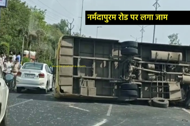 नर्मदापुरम रोड स्थित बरकतउल्ला विश्वविद्यालय के सामने बस पलट गई। जिससे की घंटों तक जाम से लोग परेशान हुए।
