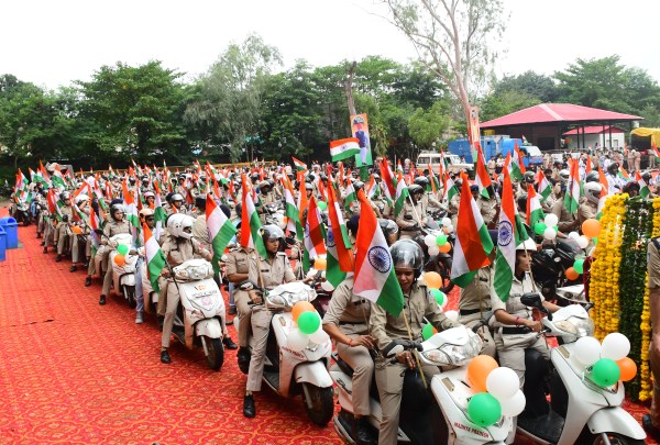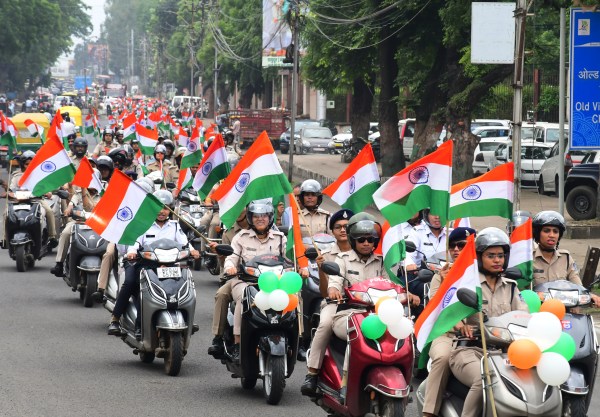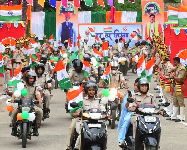 स्वतंत्रता दिवस के पूर्व 1000 वाहन भोपाल पुलिस के जवान हेलमेट पहनकर तिरंगा यात्रा निकाली