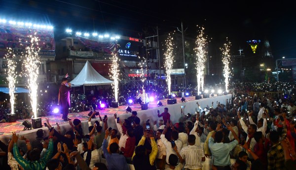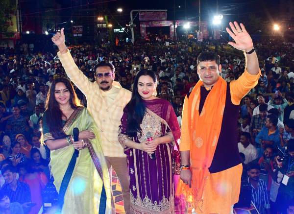 फिल्मी कलाकार पद्मिनी कोल्हापूरी, गुलशन ग्रोवर गीतांजलि मिश्रा और सिंगर हेमंत बृजवासी भव्य प्रस्तुति दी साथ में भाजपा जिला अध्यक्ष सुमित पचौरी रहे