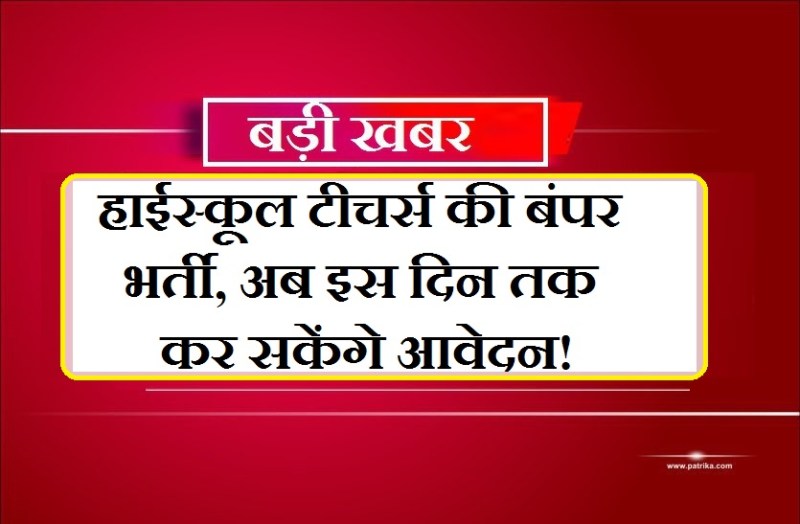 वहीं बोर्ड ने इन पदों के लिए आवेदन करने की अंतिम तिथि को 20 अक्टूबर High School Teacher Recrutment-2018 तक बढ़ा दिया है। जबकि इससे पहले ऑनलाइन आवेदन करने की अंतिम तारीख 25 सितंबर 2018 थी, जिसे बढ़ाकर 20 अक्टूबर 2018 कर दिया गया है।
