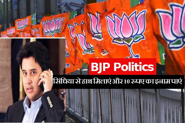 भोपाल। कांग्रेस के नेता ज्योतिरादित्य सिंधिया की घेराबंदी करने के लिए MP बीजेपी ने नया तरीका (MP Politics) निकाला है। इसके तहत बीजेपी सरकार के मंत्री जयभान पवैया ने ऐलान किया है कि जो भी सिंधिया से उनका नाम लेकर हाथ मिलाएगा, उसे 10 रुपए इनाम(bjp announces get 10 rupee on handshake with jyotiraditya scindia) में दिए जाएंगे। उन्होंने साथ में यह भी कहा कि इनाम पाने वाले को हाथ मिलाने का एक वीडियो भी दिखाना होगा। सूत्रों के मुताबिक पवैया ने यह भी कहा कि ऐसा करने वालों को ‘प्रजातंत्र स्वाभिमान सम्मान’ भी दिया जाएगा।