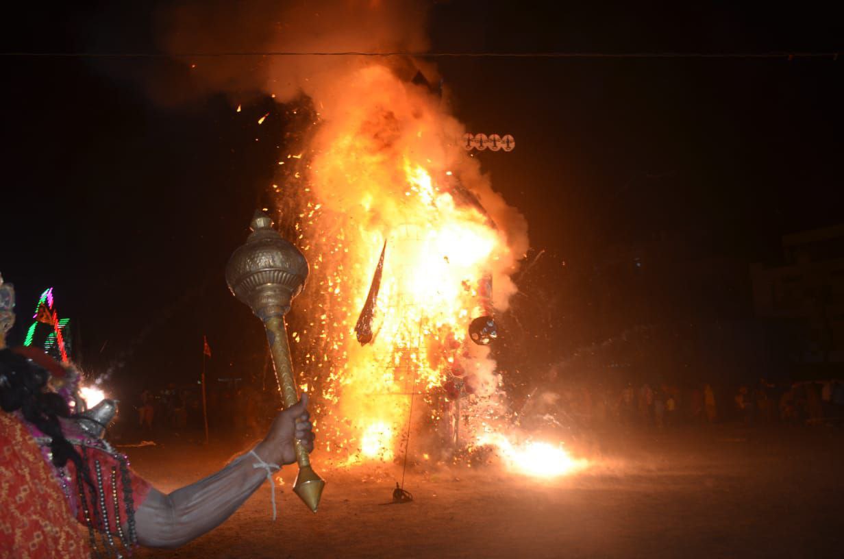 भोपाल. नवरात्रि के दसवें दिन दशहरा मनाया जाता है, इसी दिन जगह-जगह रावण के पुतले का दहन किया जाता है, लेकिन शहर के छोला दशहरा मैदान में साल में दो बार रावण दहन की परंपरा है जो पिछले 68 सालों से चली आ रही है। इसी के तहत शुक्रवार को यहां रावण दहन किया गया। रामलीला समापन के मौके पर छोला दशहरा मैदान पर रावण दहन किया गया। इससे पहले राम-रावण युद्ध का मंचन किया गया। इसके बाद श्रीराम बने कलाकार ने अग्निबाण से रावण का दहन किया। रावण दहन के बाद रंगारंग आतिशबाजी हुई, जिसे देखने के लिए लोगों की भारी भीड़ लगी रही।