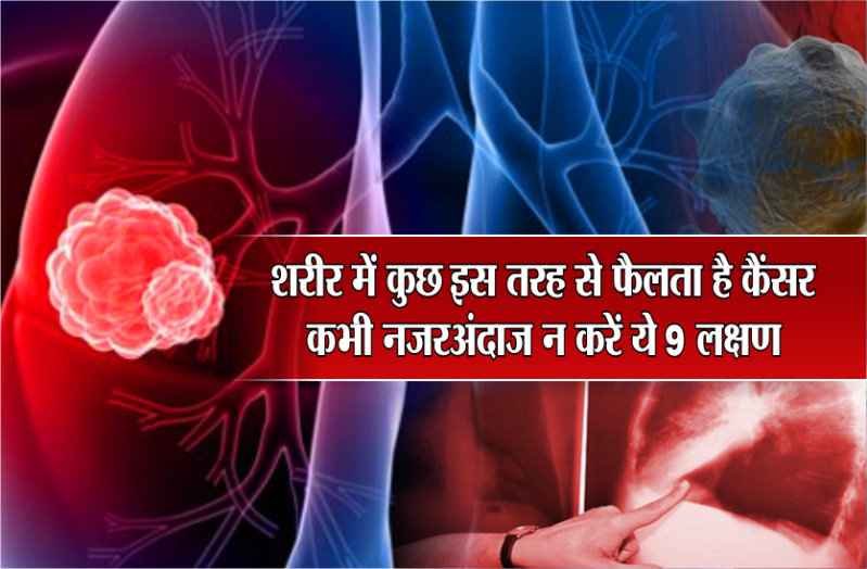 शरीर में कैंसर मुख्यत तीन प्रकार से फैलता है। ये तीन प्रकार हैं डायरेक्ट एक्सटेंशन या इंवेजन। प्राइमरी ट्यूमर आस-पास के अंगों और टिश्यूज में फैलता है। लिम्फेटिक सिस्टम में कैंसर की कोशिकाएं प्राइमरी ट्यूमर से टूट कर शरीर के दूसरे अंगों तक चली जाती हैं। लिम्फेटिक सिस्टम टिश्यूज और अंगों का ऐसा समूह है जो संक्रमण और बीमारियों से लड़ने के लिए कोशिकाएं बनाकर इन्हें स्टोर करके रखता है। बता दें कि कैंसर खून से भी फैलता है। इसे हीमेटोजिनस स्प्रैड कहा जाता है। इसमें कैंसर की कोशिकाएं प्राइमरी ट्यूमर से टूट कर खून में आ जाती हैं और खून के साथ शरीर के दूसरे हिस्सों तक पहुंच जाती हैं। जिससे कैंसर पूरे शरीर में फैल जाता है।