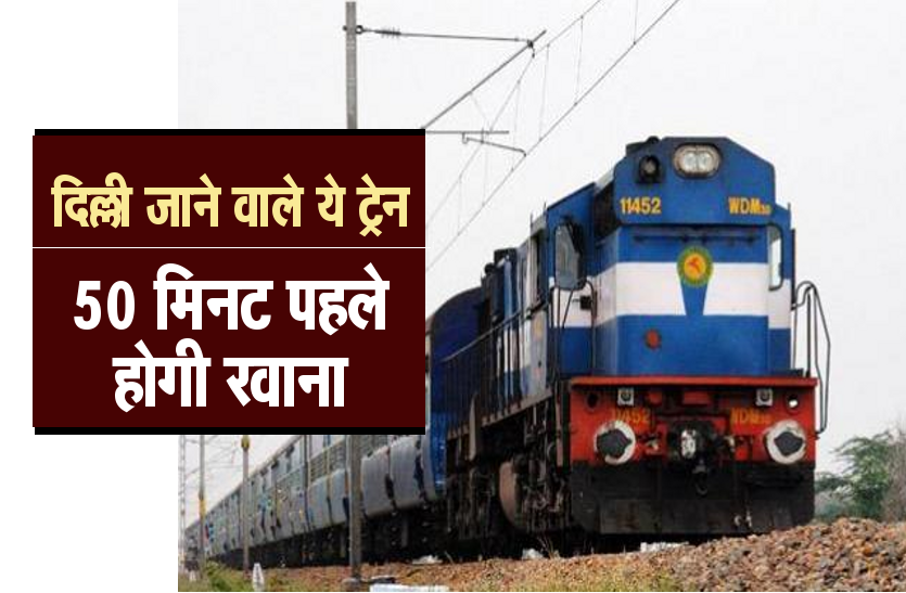 भोपाल/ मध्यप्रदेश की राजधानी भोपाल से दिल्ली को जाने वाली ट्रेन नंबर 02131 भोपाल-हजरत निजामुद्दीन इज्तिमा स्पेशल गाड़ी के पूर्व में घोषित प्रस्थान समय 22.50 में आज परिवर्तन किया गया है। यह गाड़ी आज भोपाल स्टेशन से 22.50 बजे के स्थान पर 22.00 बजे प्रस्थान करेगी। यानि आज भोपाल-हजरत निजामुद्दीन ट्रेन 50 मिनट पहले भोपाल स्टेशन से रवाना होगा। शेष समय सारणी यथावत रहेगी। यह जानकारी पश्चिम मध्य रेल के मंडल रेल प्रबंधक कार्यालय से जारी की गई सूचना में बताया गया।