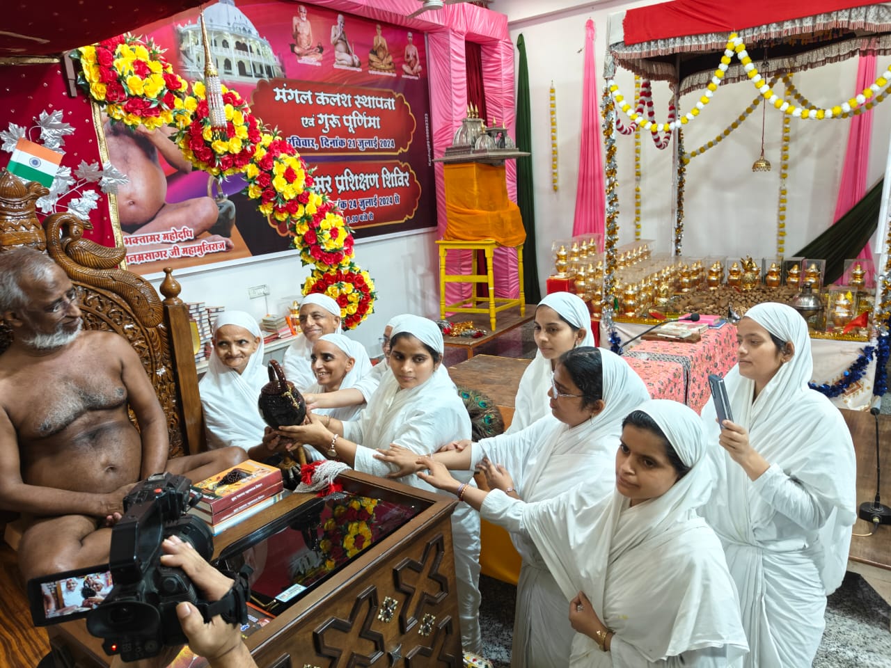 मौका था नंदीश्वर जिनालय में जनक जननी सम्मान समारोह का। बच्चों को संस्कारों से जोड़ने और माता पिता और घर के बड़ों का सम्मान करने के लिए प्रेरित करने सोमवार को यह आयोजन किया गया। इस समारोह में 51 परिवारों ने भाग लिया। इस दौरान बेटा-बेटियों ने अपने माता पिता और घर परिवार के वरिष्ठ सदस्यों का सम्मान किया। इस कार्यक्रम का आयोजन चातुर्मास कर रहे आचार्य विनम्र सागर के सानिध्य में हुआ। इस मौके पर आचार्यश्री के शिष्य, मुनि, आर्यिका माता और ब्रह्मचारिणी दीदी द्वारा आचार्यश्री का पाद प्रक्षालन कर शास्त्र भेट किए गए। चातुर्मास समिति के अंशुल जैन ने बताया कि इस मौके पर बुजुर्गों के अच्छे स्वास्थ्य और दीर्घायु की कामना की गई।