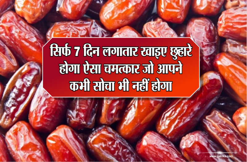 भोपाल। छुहारे का पेड़ होता है जिस पर छुहारे का फल लगता है। आपको बता दें कि जैसे अंगूर का सूखने के बाद हम इसे किसमिस कहते है वैसे ही छुहारे खजूर के सूखने के बाद होते है। छुहारे खाने पर आपको अपने शरीर मे कई तरह के बदलाव देखने को मिल सकते है और छुहारा और खजूर दोनों ही गरम तासीर के होते है तो इनको सर्दी के मौसम मे लेना बहुत ही ज्यादा फायदेमंद साबित होता है। शहर की डॉयटीशियन रश्मि श्रीवास्तव बताती है कि छुहारा में भरपूर मात्रा में फाइबर, आयरन, कैल्शियम, जिंक, मैग्नीशियम पाया जाता है। जो कि हम वजन कम करने, कैंसर, दिल संबंधी जैसी कई गंभीर बीमारियों से बचाता हैं। जानिए छुहारे के अन्य चमत्कारिक फायदे...