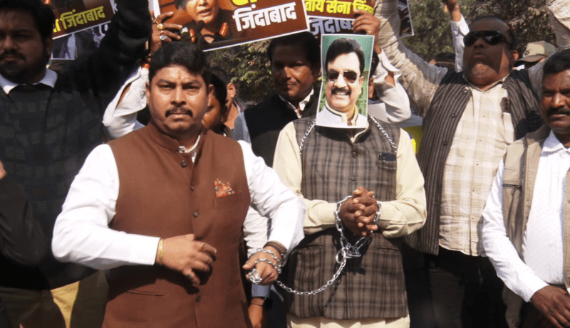 Congress arrested and chained the picture of Minister Vijay Shah