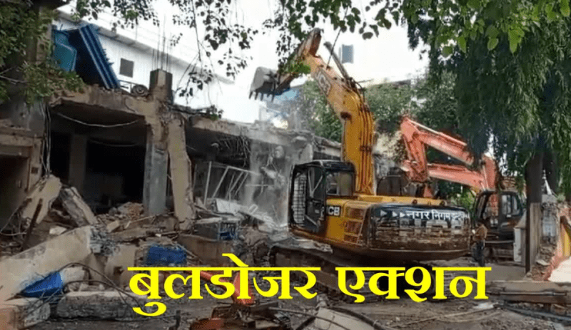 Constructions demolished by running bulldozers on two illegal colonies of Bhopal