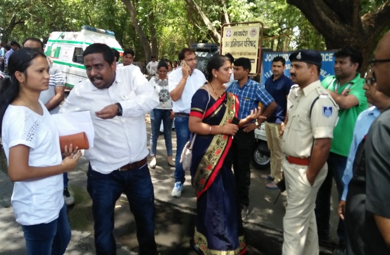 भोपाल. मध्यप्रदेश की राजधानी भोपाल में संविदा कर्मचारियों की मांगें पूरी न होने पर शुक्रवार को कर्मचारियों ने सीएम हॉउस का घेराव किया। इस दौरान सुरक्षा में लगे पुलिसकर्मियों ने उन्हे सीएम हाउस के बाहर ही रोक लिया। जिससे संविदा कर्मचारियों और पुलिस के बीच बहस शुरू हो गयी। संविदा कर्मचारियों का कहना है कि पुलिस ने उन्हे भगाया है, हालांकि कुछ देर बाद आरएसएस के अनुसांगिक संगठन बीएएमएस को अंदर बुलाये जाने से संविदा कर्मचारी संघ के कर्मियों के बीच आपसी दरार की स्थिति बनी हुई है, जिससे कुछ कर्मी नराज दिखायी दिए।