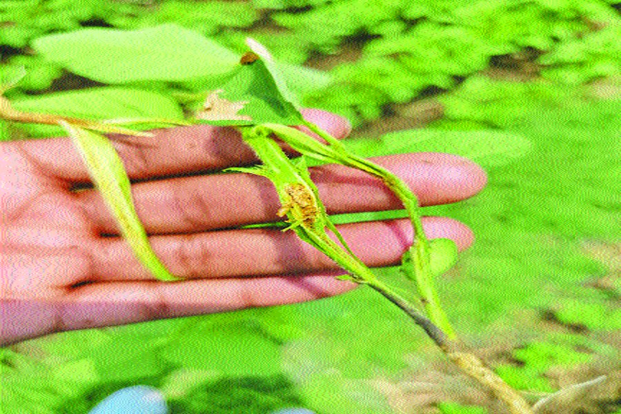 गुना. कृषि विज्ञान केंद्र के अनुसार वर्तमान में सोयाबीन की फसल बेहतर स्थिति में है, लेकिन कहीं-कहीं वर्षा कम होने के कारण फसल मुरझा रही है। वरिष्ठ वैज्ञानिक डॉ अखिलेश श्रीवास्तव के अनुसार कीट का प्रकोप पूरे जिले में है। सही कीटनाशक का उपयोग सही समय पर किया जाना जरूरी हो गया है। मुख्य रूप से चना की इल्ली, सेमीलूपर तथा तना मक्खी कीट का प्रकोप है। तना मक्खी कीट पुष्पन और फलन पर असर डालेगा। पौधे में पीलापन दिखाई देगा। इससे पौधे सूखने लगते हैं और पीले दिखाई देते हैं।