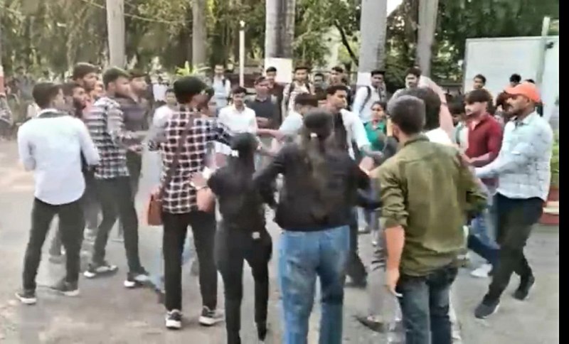 भोपाल. माखनलाल चतुर्वेदी राष्ट्रीय पत्रकारिता एवं संचार विश्वविद्यालय में सोमवार को दो गुटों के बीच वाद विवाद की स्थिति मारपीट में तब्दील हो गई। मामला यहीं तक नहीं रुका, दोनों पक्ष एमपी नगर थाने पहुंच गए और उन्होंने वहां दोनों पक्षों ने एक दूसरे के खिलाफ एफआइआर दर्ज कराई है। वहीं, दूसरी तरफ इस मामले में संज्ञान लेने हुए विश्वविद्यालय के कुलपति केजी सुरेश ने भी चार सदस्यीय जांच कमेटी गठित कर दी है। कमेटी 11 नवंबर को अपनी जांच रिपोर्ट कुलपति को सौंपेगी। रिपोर्ट के आधार पर दोषी छात्रों के खिलाफ कार्रवाई की जाएगी।