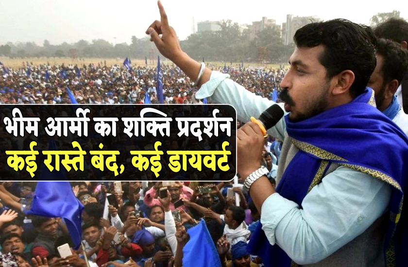 25 सूत्रीय मांगों को लेकर भीम आर्मी का शक्ति प्रदर्शन, बंद किये गए कई रास्ते, कई रूट डायवर्ट