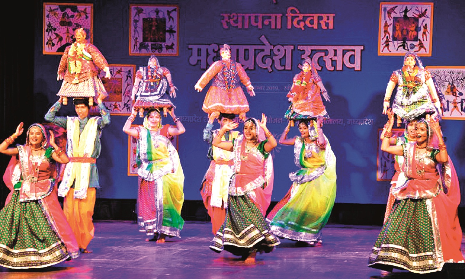 समारोह के दूसरे दिन की अंतिम प्रस्तुति साधना उपाध्याय के संयोजन में तैयार किए गए निमाड़ांचल के गणगौर लोकनृत्य की हुई, जिसमें 16 कलाकारों द्वारा अपने सिर पर शिव-पार्वती को धारण कर उनकी आराधना नृत्य संगीत के माध्यम से की गई। ये प्रस्तुति मनमोहक रही।