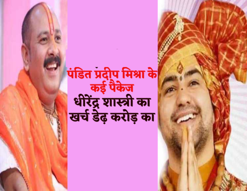 पं. धीरेंद्र शास्त्री की कथा में भी 1.50 करोड़ का खर्चा, पं. प्रदीप मिश्रा की कथा के अलग-अलग पैकेज — उनका कहना है कि पंडित धीरेंद्र शास्त्री की कथा में भी करीब 1.50 करोड़ का खर्चा आता है। उनका कार्यक्रम अमूमन 5 से 7 दिन का रहता है। इधर सीहोरवाले पंडितजी के रूप में जानेजाते कथावाचक प्रदीप मिश्रा की कथा के अलग-अलग कई पैकेज बताए जाते हैं। उनका पैकेज न्यूनतम 1.50 करोड़ रुपए का है। विदुषी जया किशोरी भी एक कार्यक्रम के 9 से 10 लाख रुपए लेती हैं। चैनल पर प्रसारण, पांडाल, साउंड सहित अन्य खर्च अलग से रहते हैं।