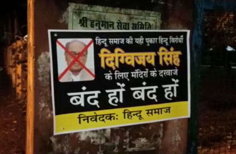 दिग्विजय सिंह के लिए मंदिरों के दरवाजे बंद करने की अपील, शहर में लगाए गए पोस्टर