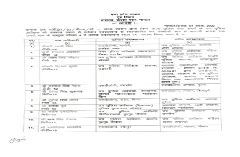 रमेश कुमार रावत---एसडीओपी लटेरी, विदिशा---एसडीओपी पथारिया, दमोह