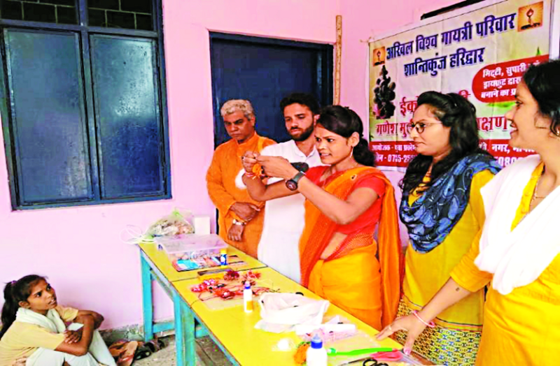 ईको फ्रेंडली राखी और गणेश प्रतिमा बनाने की सीख रहे कला