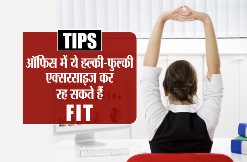 ऑफिस में लगातार 8-10 घंटे तक बैठकर काम करने से हमारी गर्दन, कंधे और रीढ़ की हड्डी में अकड़न और दर्द पैदा हो जाता है। जिसका दुष्प्रभाव हमारे शरीर और मन दोनों पर पड़ता है। इसलिए जरूरी है कि ऑफिस में फिट और एक्टिव रहने के लिए काम से साथ आपको हल्का-फुल्का व्यायाम करते रहना चाहिए। इसीलिए आज हम आपको कुछ ऐसे व्यायाम बताने जा रहे हैं जिन्हें आप ऑफिस में बैठे-बैठे आसानी से कर सकते हैं।
