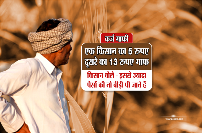 भोपाल। मध्यप्रदेश में कांग्रेस की कमलनाथ सरकार ने किसानों के कर्ज माफी की शुरूआत तो कर दी, लेकिन जब किसानों का कर्ज माफ करने की बात आई तो किसी किसान का 5 रुपए, तो किसी का 13 रुपए ही कर्ज माफ हो रहा है। निराश किसानों का कहना है कि इससे ज्यादा पैसों की तो हम बीड़ी पीते हैं।