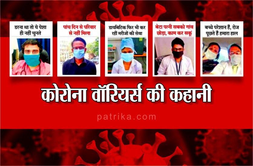 इनके इलाज में जुटे चिकित्सकों का कहना है कि उपचार के दौरान काफी सावधानियां बरतनी पड़ती हैं। पीड़ित की तबियत में सुधार आने पर बेहद खुशी होती है, तो दूसरी ओर घर वालों को उनकी काफी चिंता सताती रहती है। पत्रिका से कोरोना पीड़ितों का इलाज कर रहे पांच जांबाजों ने अपनी कहानी शुरू की है।