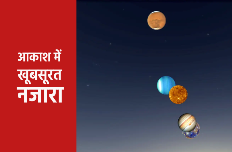 सूर्यास्त होने के 30 मिनट के भीतर ही पांचों गृह दिखाई दिए। भोपाल में भी कई लोगों ने प्लानेट के बारे में जाना। कई वर्षों में ऐसे अद्भुत नजारे देखने को मिलते हैं, जब कई ग्रह एक दूसरे के करीब आ जाते हैं। 28 मार्च 2023 के 17 साल बाद 2040 को ऐसा नजारा फिर होगा। जब बुध (mercury), गुरु (jupiter), शुक्र (venus), मंगल (mars) और यूरेनस (uranus) एक साथ नजर आएंगे।