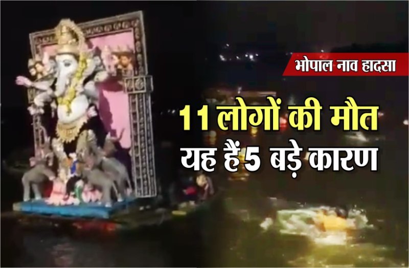 भोपाल. मध्यप्रदेश की राजधानी भोपाल के पुलिस मुख्यालय से कुछ ही दूरी पर छोटे तालाब स्थित खटलापुरा मंदिर घाट पर शुक्रवार को तड़के करीब 4 बजे भोपाल नाव हादसे में 11 लोगों के पानी में डूबने मौत हो गई। हादसे में सूचना मिलते ही सुबह से नेता, अफसर, रहवासी सभी घटना स्थल पर मौजूद रहे। ये पहला हादसा नहीं है इसके पहले भी गणेश विसर्जन के दौरान हादसे हुये हैं। जिसको लेकर प्रशासन ने कोई सबक नहीं लिया। जिसके कारण गणेश प्रतिमा विसर्जन में बड़ा हादसा हुआ।