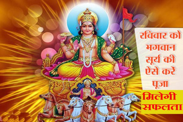 ज्योतिषचार्यों के अनुसार यदि किसी व्यक्ति की कुंडली में सूर्य अशुभ स्थिति में हो तो रविवार को सूर्य के लिए विशेष उपाय करना चाहिए। रविवार को की गई सूर्य पूजा से व्यक्ति को घर-परिवार और समाज में मान-सम्मान की प्राप्ति होती है। इसके बाद धूप, दीप से पूजन करें।
