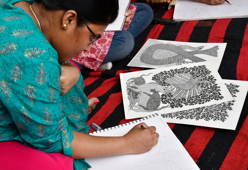 भोपाल। मानव संग्रहालय में करो और सीखो संग्रहालय शैक्षणिक कार्यक्रम के तहत गोंड चित्र कला पर सात दिवसीय कार्यशाला का आयोजन किया जा रहा है। इसमें पारम्परिक गोंड चित्रकार रामङ्क्षसह उर्वेती प्रतिभागियों को इस कला की बारिकियां सीखा रहे हैं। उन्होंने बताया कि यह चित्रकला लोककथाओं तथा आदिवासी परम्पराओं पर आधारित है। इनमें असल दुनिया व कल्पना की दुनिया की झलक मिलती है। कोइतूर या गोंड, प्रधान जनजाति जैविक रूप से प्रकृति से जुड़े होने के कारण सभी देवी-देवता प्रकृति के सभी रूपों का प्रतिनिधित्व करते हैं। इसी कारण गोंड जनजाति के लोग अलौकिक शक्तियों पर ज्यादा विश्वास करते हैं क्योकि ये संरक्षक देवता सभी तरह के नुकसान से रक्षा करते है।