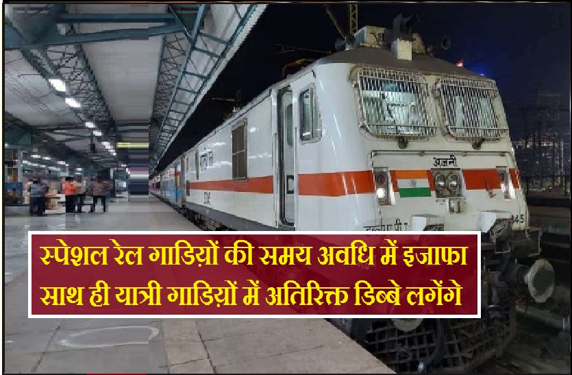 भोपाल। रानी कमलापति एवं भोपाल स्टेशन से अपना सफर शुरू करने वाले यात्रियों के लिए खबर राहत देने वाली है। भोपाल डीआरएम सौरभ बंदोपाध्याय ने ट्रेनों में चल रही वेटिंग और भीड़ भाड़ को नियंत्रित करने के लिए स्पेशल रेल गाडिय़ों की समय अवधि में इजाफा किया है। इसके अलावा यात्री गाडिय़ों में अतिरिक्त डिब्बे लगाने का फैसला किया गया है। रेलवे ने यात्रियों से अपील की है कि यात्रा के दौरान कोविड-19 से सम्बंधित सरकार द्वारा जारी सभी दिशा निर्देशों का पालन करें।
