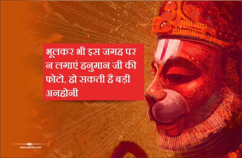 पंडित जी बताते है कि वास्तु शास्त्र के हिसाब से कभी भी हनुमान जी की फोटो को उत्तर दिशा में नहीं लगाना चाहिए। हनुमान जी की फोटो हमेशा दक्षिण दिशा की ओर देखते हुए लगाना चाहिए। जहां तक संभव हो फोटो बैठी मुद्रा में लाल रंग की हो अच्छा रहता है। पंडित जी बताते है कि दक्षिण दिशा की ओर मुख करके हनुमानजी का चित्र इसलिए अधिक शुभ है क्योंकि हनुमानजी ने अपना प्रभाव सर्वाधिक इसी दिशा में दिखाया है। हनुमानजी का चित्र लगाने पर दक्षिण दिशा से आने वाली सारी नाकारात्मक शक्तियां समाप्त हो जाती हैं। घर में हमेशा सुख और समृद्धि बनी रहती है।