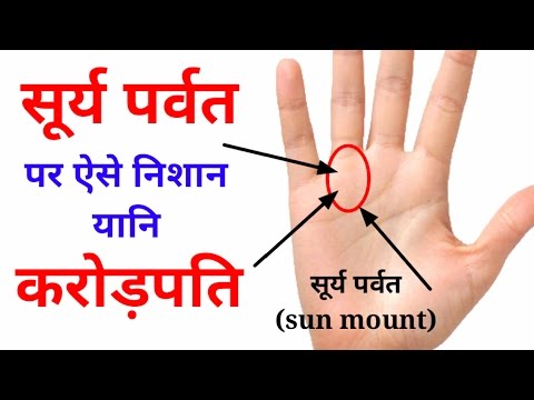 पंडित जी बताते है कि हस्तरेखा शास्त्र के अनुसार करोड़पति बनने का योग मुख्यत: सूर्य पर्वत, सूर्य रेखा और भाग्य रेखा से पता किया जा सकता है। हथेली के मध्यभाग में स्थित सूर्य रेखा जो मणिबंध से ऊपर रिंग फिंगर के नीचे वाले सूर्य पर्वत की ओर जाती है। उस रेखा से यह मालूम होता है कि व्यक्ति को मान-सम्मान और धन की कितनी प्राप्ति होगी। आपको बता दें कि ये रेखा हर किसी के हाथ में नहीं होती है। कुछ भाग्यशाली लोगों के हाथों में ही ये रेखा होती है। जिन लोगों की हथेली में बुध पर्वत और मस्तिष्क रेखा पर सफेद तिल होता है और भाग्यरेखा स्पष्ट, सीधी या पूरी तरह गायब हो तो वो जातक भी अवश्य करोड़पति बनता है।
