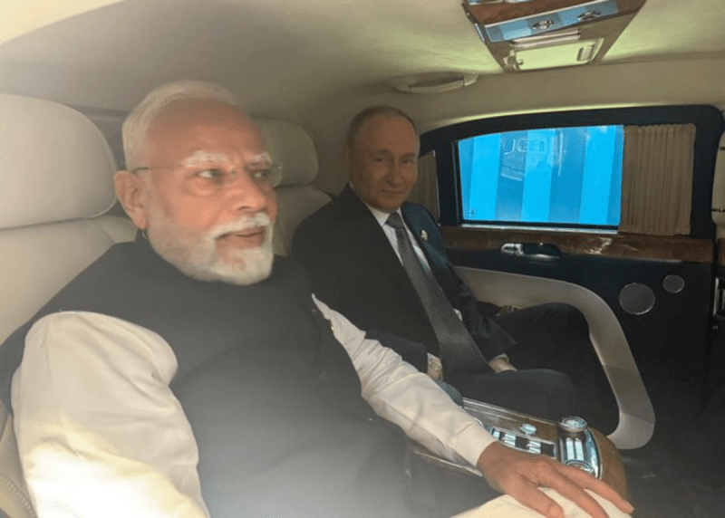 एक ही कार में बैठकर जब SCO बैठक के लिये पहुँचे भारत के आदरणीय प्रधानमंत्री श्री @narendramodi जी एवं रूसी राष्ट्रपति श्री @KremlinRussia_E जी!