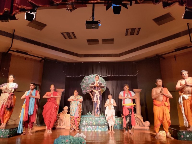 नाट्य अनुसंधान केंद्र के एचओडी प्रो. सुज्ञान कुमार मंहती ने बताया कि इसमें भारत के सभी राज्यों की विधाओं को समाहित किया गया है। एक घंटे के इस नाटक के जरिए आजकल ढोंगी बाबा बनकर जो अपना पेट भरने के लिए धर्म का विनाश कर रहे हैं, उन पर कटाक्ष किया गया है। इसके लिए छात्र एक सप्ताह से प्रैक्टिस कर रहे हैं। नाटक को इस तरह से तैयार किया जा रहा है कि गैर संस्कृत भाषी भी इसे आसानी से समझ सकें।