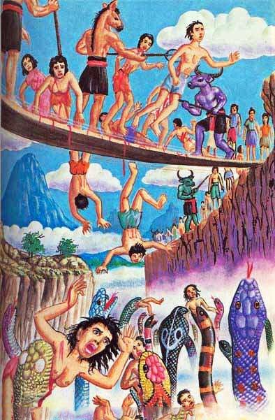 शरीर छोड़ने के बाद अपने गंतव्य स्थान तक जाने के लिए आत्मा को वैतरणी नदी पार करनी होती है। यह नदी मानव मल-मूत्र, मरे हुए कीड़ों, हड्डियों, रक्त, मांस से भरी है। जिन लोगों के पाप अतुलनीय हैं, जिन्होंने पूरी जिंदगी अपनी शक्तियों का गलत प्रयोग किया है, दूसरों का दमन किया है, उन्हें मरने के बाद इसी नदी के घटकों पर जीवन जीना होता है।