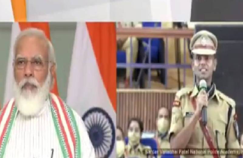 एकेडमी के 'दीक्षांत परेड' समारोह में पीएम मोदी ने युवा अधकारियों से उनके करियर और कोरोना काल को लेकर बातें कर रहे थे। इस दौरान मध्य प्रदेश कैडर के युवा आईपीएस अधिकारी आदित्य मिश्रा ने कोरोना वॉरियर देवेंद्र चंद्रवंशी को याद किया और उनके लिए ''मैं खाकी हूं'' कविता सुनाई।