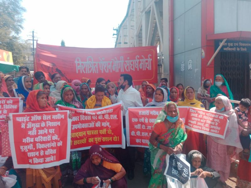 दरअसल सरकार सामाजिक न्याय विभाग की तरफ से गैस पीड़िताएं, अन्य विधवाओं, बुजुगों सहित करीब 60 से 65 हजार लोगों को हर माह 600 रुपए की पेंशन देता है। लेकिन विस्थापन के नाम पर इनकी पेंशन रोक दी जाती है। जबकि गैस पीड़त निराश्रित पेंशन भोगी पीड़ित महिला संघर्ष मोचाZ के अध्यक्ष बालकृष्ण नामदेव ने बताया कि वे महिलाएं अपने ही घरों में निवास कर रही हैं। उनका विस्थापन कहीं नहीं हुआ है। इसी के सत्यापन के लिए बुजुर्ग परेशान हैं। जब विरोध करो तो कुछ पेंशन शुरू होती है।