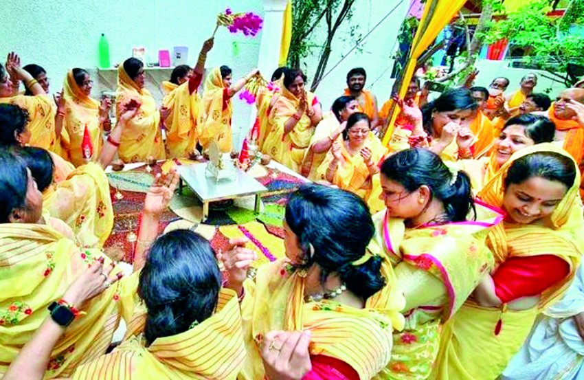 इंद्र-इंद्राणियों ने जयकारों के साथ फहराई केसरिया धर्म ध्वजा