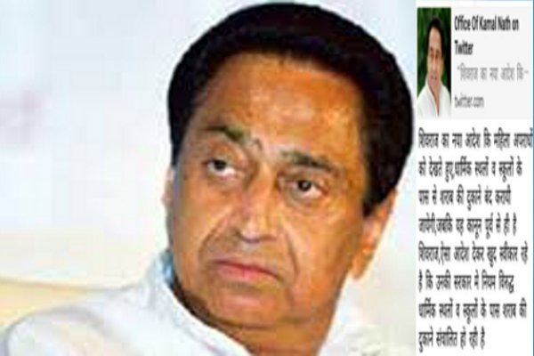 कमलनाथ ने ट्वीट किया है कि मुख्यमंत्री शिवराज ने निर्देश दिए हैं कि महिला अपराधों को देखते हुए धार्मिक स्थलों व स्कूलों के पास से शराब की दुकानें बंद कराई जाएंगी।