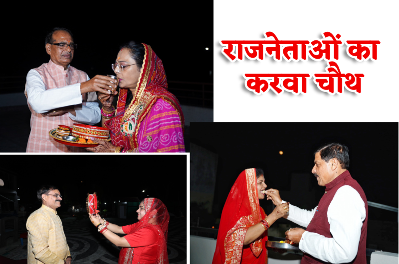 20 अक्टूबर को देशभर में करवा चौथ की धूम नजर आई। घर की छतों और कॉलोनियों के आयोजन स्थलों पर सुहागिनें चौथ के चांद की पूजा कर, पति की लंबी उम्र और सुख समृद्धि की कामना करते नजर आईं। इस बीच एमपी के दिग्गज राजनेताओं के घरों की छत पर भी उनकी पत्नियों ने सुहाग मांगा और चांद के साथ पति की भी पूजा की। पैर छूकर आशीर्वाद मांगा। केंद्रीय मंत्री शिवराज सिंह चौहान, मध्यप्रदेश के सीएम मोहन यादव और वीडी शर्मा ने इन खास पलों को ट्वीटर पर शेयर किया। यहां देखें तस्वीरें...