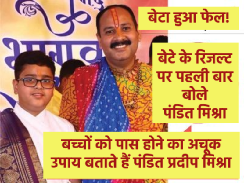 सोशल मीडिया और अन्य कई प्लेटफॉर्म पर कथावाचक पंडित प्रदीप मिश्रा के बेटे के रिजल्ट के बारे में खबर चल रही है। इनमें दावा किया जा रहा है कि पंडित मिश्रा का बेटा आठवीं में फेल हो गया है। इस बात पर पंडित मिश्रा पर कुछ लोग यह कहकर कटाक्ष भी कर रहे हैं कि क्या पंडित जी ने बेल पत्र पर शहद अच्छे से नहीं लगवाया था! लोग उनका मजाक बनाते हुए कह रहे हैं कि पंडितजी बच्चों को पास कराने का उपाय बताते हैं पर खुद ही अपने बेटे को पास नहीं करा पाए।