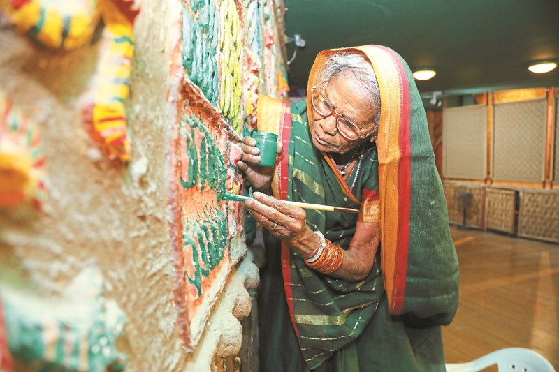 जोधइया बाई ने बताया कि मैं पेरिस और मिलान जैसे शहरों में पेंटिंग कर चुकी हूं। इटली, फ्रांस, जापान, इंग्लैंड से लेकर अमेरिका तक की आर्ट गैलरियों में मेरी कलाकृतियों को देख सकते हैं। 2022 में महिला दिवस के अवसर पर तत्कालीन राष्ट्रपति रामनाथ कोविंद ने मुझे नारी शक्ति सम्मान से सम्मानित किया था। उन्होंने बताया कि जनजातीय संग्रहालय की दीवार को 10 साल पहले बैगा चित्रकारी से सजाया था। अब उसके रंग फीके पड़ गए हैं। उसी चित्र के जीर्णोद्वार के लिए मैं यहां आई हूं। यह मेरे लिए गौरव की बात है कि मुझे अभी भी लोग इतना सम्मान दे रहे हैं।