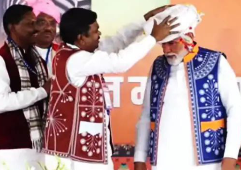 पीएम मोदी तीन माह में दूसरी बार झाबुआ आए हैं। मंच पर स्थानीय आदिवासी नेताओं ने पीएम मोदी को लोक संस्कृति के प्रतीक चिह्न के रूप में तीर-कमान, आदिवासी गुड्डे गुड़िया भेंट किए। झूलड़ी पहनाकर उनका स्वागत किया गया। परंपरागत स्वागत से पीएम मोदी अभिभूत हो गए।