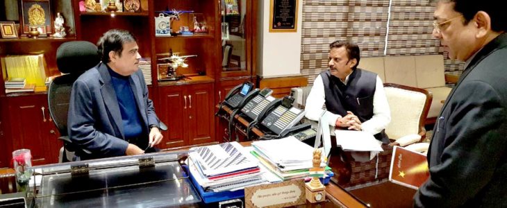 Industry Minister Shukla talks to union minister Gadkari