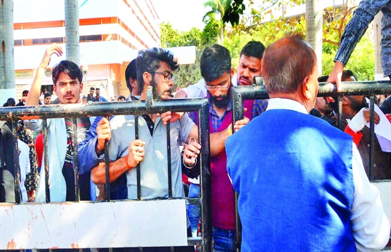 दोपहर 12 बजे शुरू हुए प्रदर्शन में छात्रों की बढ़ती संख्या देख प्रबंधन ने परिसर में पुलिस बुला ली। पुलिस को देख कर विद्यार्थी भड़क गए। उन्होंने मुख्य द्वार पर ताला डाल दिया। 5 घंटे तक चले प्रदर्शन के दौरान छात्रों ने कुलपति और कुलसचिव को मौके पर आकर समस्याएं सुनने की मांग रखी। हालांकि छात्रों के आक्रोश को देखते हुए प्रभारी कुलपति पी नरहरि ने 2 दिन में शिकायती छात्रों की कॉपियों का पुर्नमूल्यांकन करा निराकरण करने के निर्देश तत्काल जारी कर दिए। छात्रों की मांगें माने जाने के बाद विद्यार्थियों ने लगभग 5.30 बजे प्रदर्शन समाप्त कर दिया। मांग के अनुसार फेल स्टूडेंट के सामने उनकी कॉपी री-चेक की जाएगी। इस दौरान उसके साथी स्टूडेंट भी साथ होंगे।