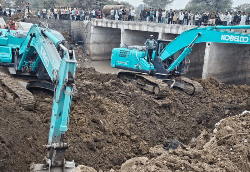 सोमवार को पुल निर्माण के दौरान दीवार गिरने से मिट्टी में दबने से 3 मजदूरों की मौत हो गई। शाहगंज थाना प्रभारी पंकज वाडेकर ने बताया कि पुल निर्माण कार्य के दौरान पहले से बनी रोड की रिटेनिंग वॉल का स्लैब धंस गया जिससे वहां काम कर रहे मजदूर दब गए। चार मजदूर मिट्टी में दब गए।